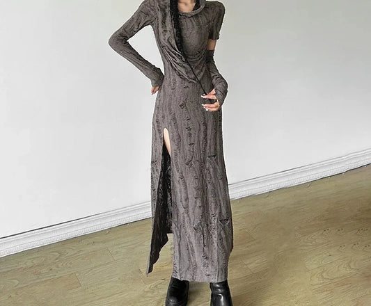 Autumn Festival women's hooded slim fit slit sleeve dress