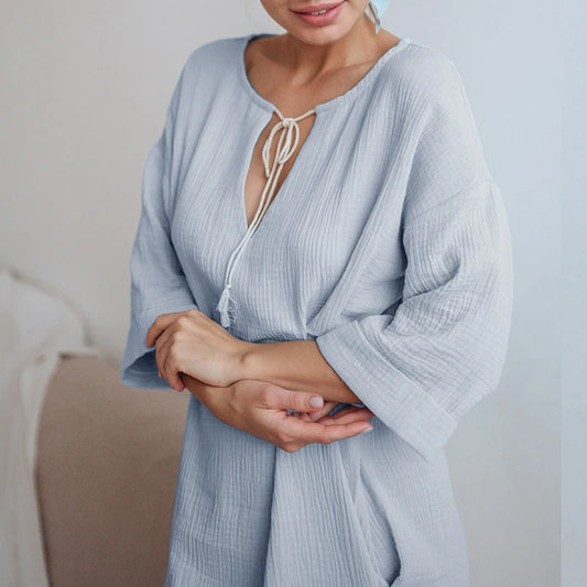 Damenkleid mit langen Ärmeln aus 100 % Baumwolle – Retro-Stil mit Schnürung