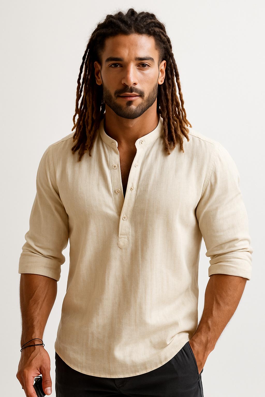 Discover the perfect blend of laid-back charm and refined craftsmanship with our Men’s Cotton-Linen Shirt. Designed for the modern man, this shirt features a breathable cotton-linen fabric that offers both softness and durability, ensuring comfort throughout the day.