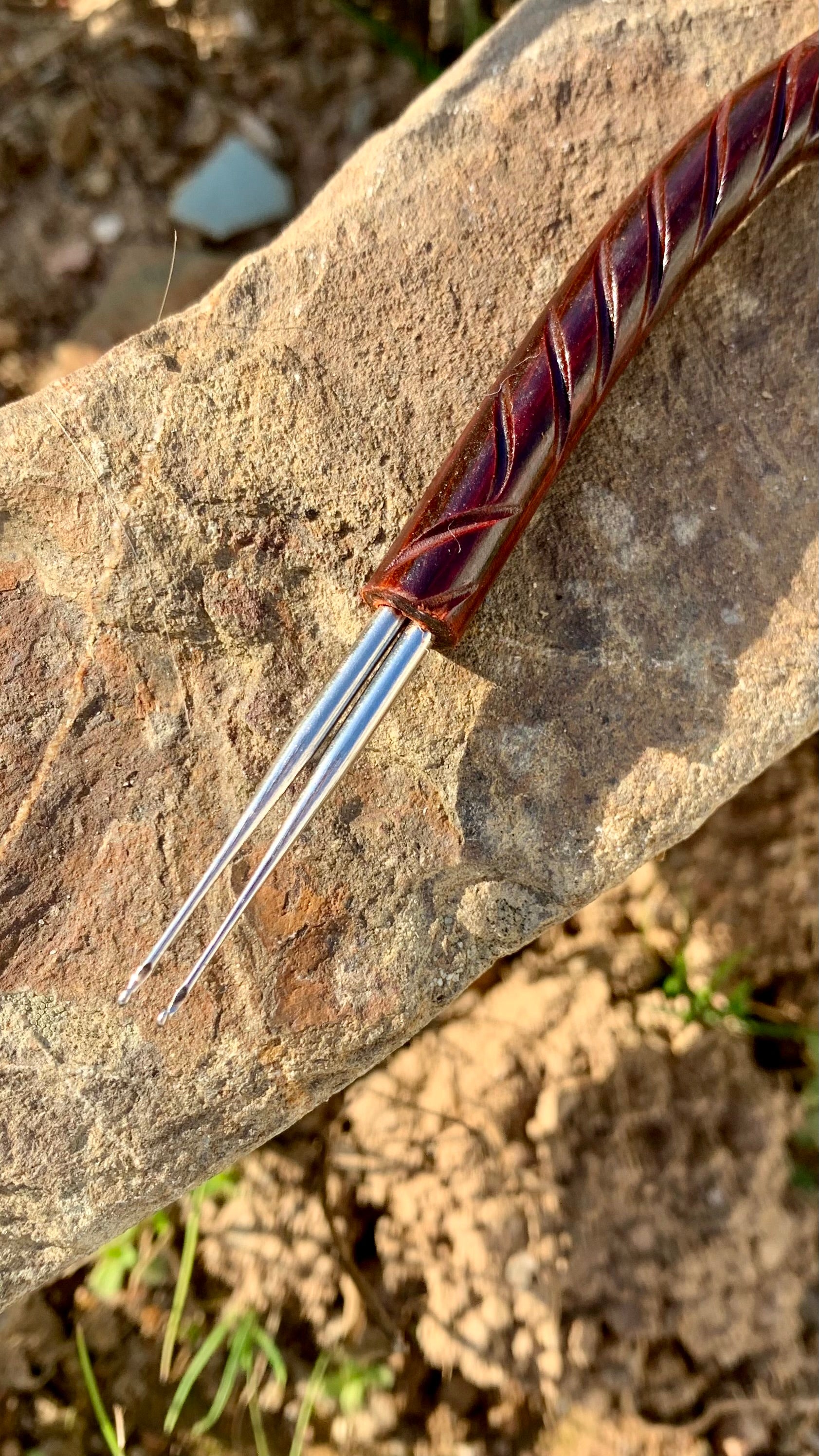 Eine Handgemachte Nadel aus der Schmiede von Lamaní die wirklich nichts zu tun haben mit der Chinesischen Qualität die du überall erwerben kannst! Die Häkelnadel ist aus echtem Stahl der aus der deutschen Qualitätsschmiede Addi kommt. Sie lassen sich ohne viel Druck im Dread ein und aus bewegen!