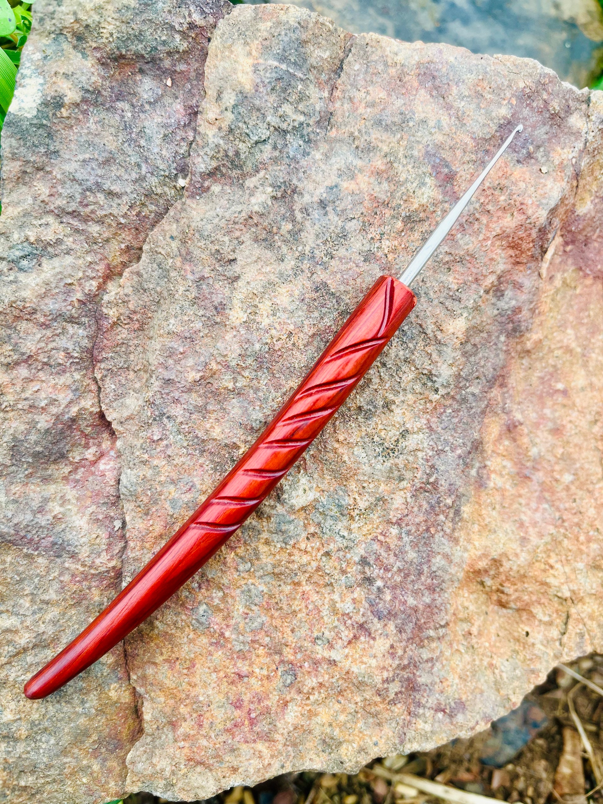 Die Häkelnadel ist handgefertigt! Die Edel-Holz Serie, bekommt erst durchs polieren seine sehr seltene Optik. Robust und fürs professionelle Arbeiten konzipiert.