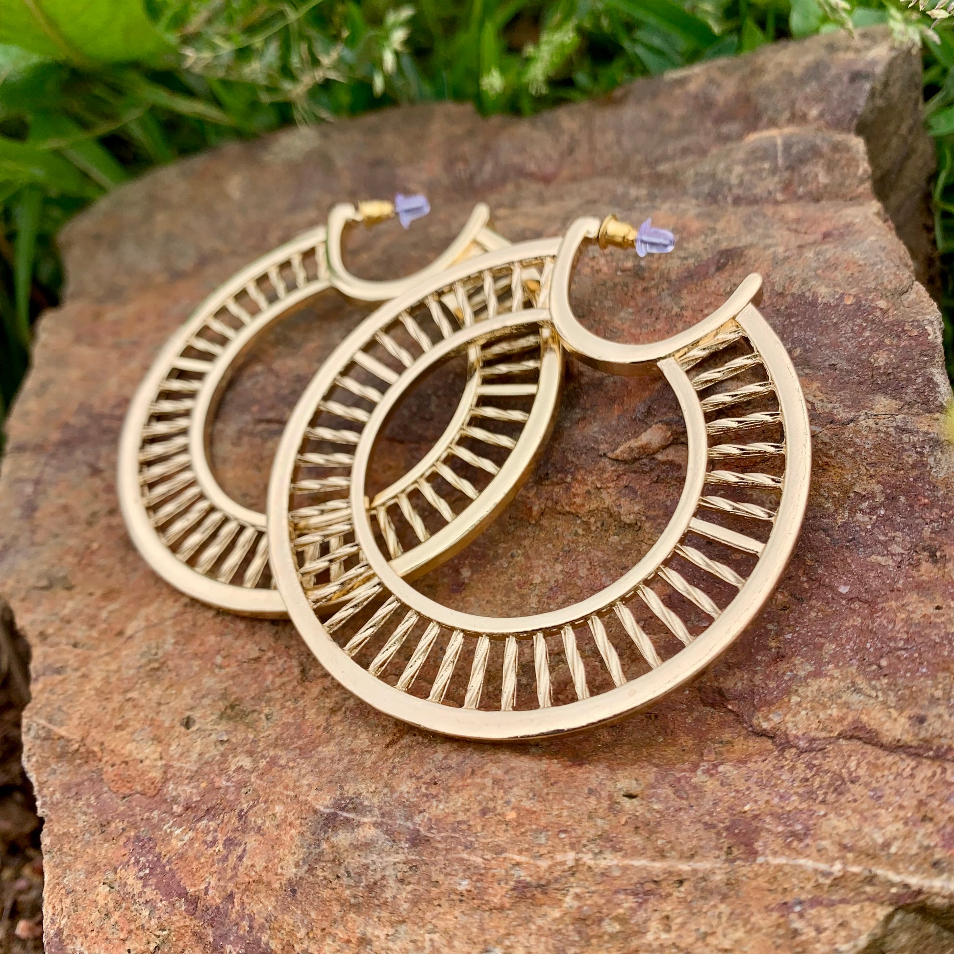 Händisch gefertigte, goldene Creolen mit authentischen marokkanischen Details. Perfekt, um deinem Look einen exotischen und eleganten Touch zu verleihen. Bequem und ideal für jede Gelegenheit.