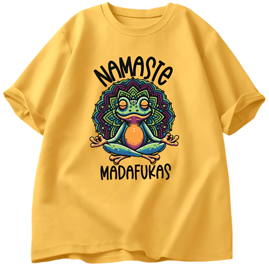 Das „Namaste, Motherfuckers“-T-Shirt mit meditierendem Frosch bringt Lockerheit und Stil in den Alltag. Ob beim Yoga, im Café oder entspannt zu Hause – mit diesem Shirt setzt du ein humorvolles Statement und bleibst dabei absolut bequem gekleidet!