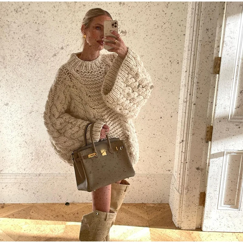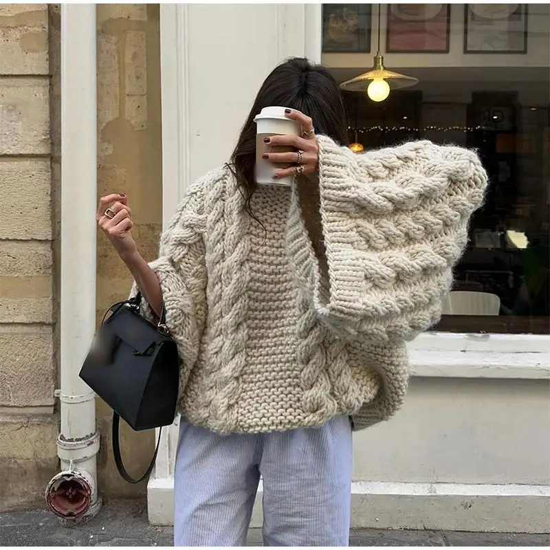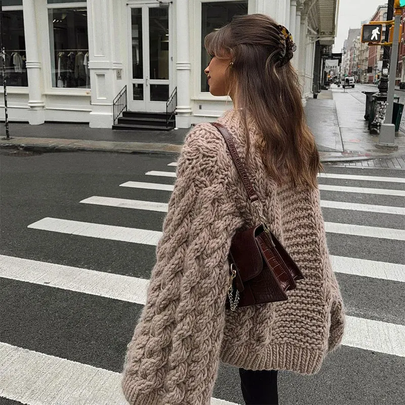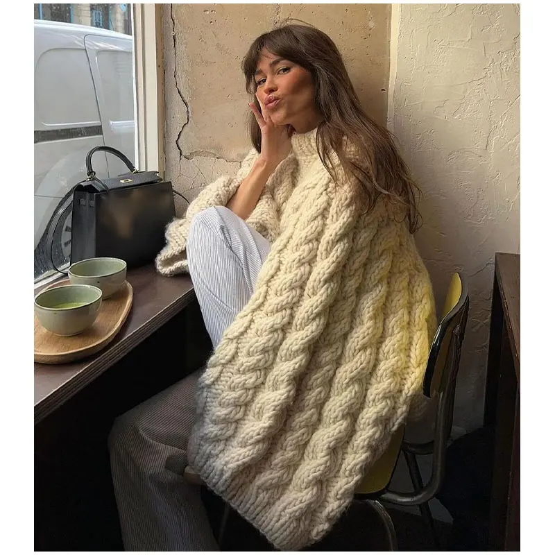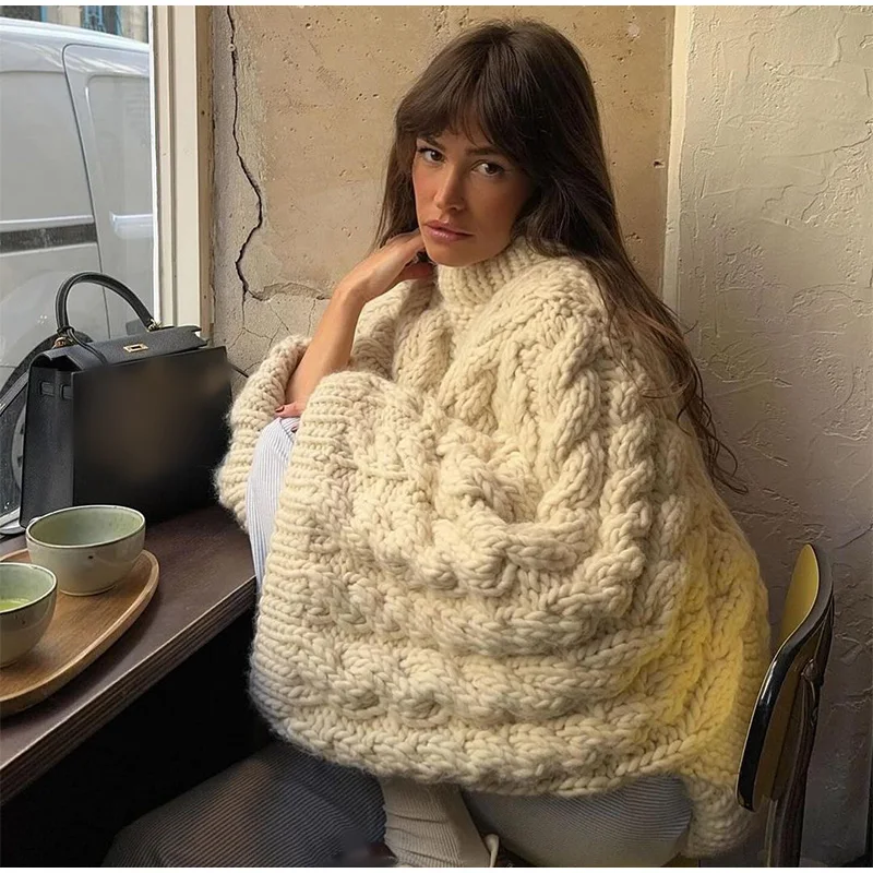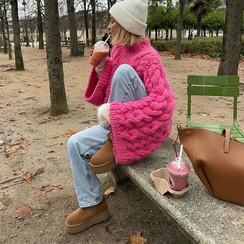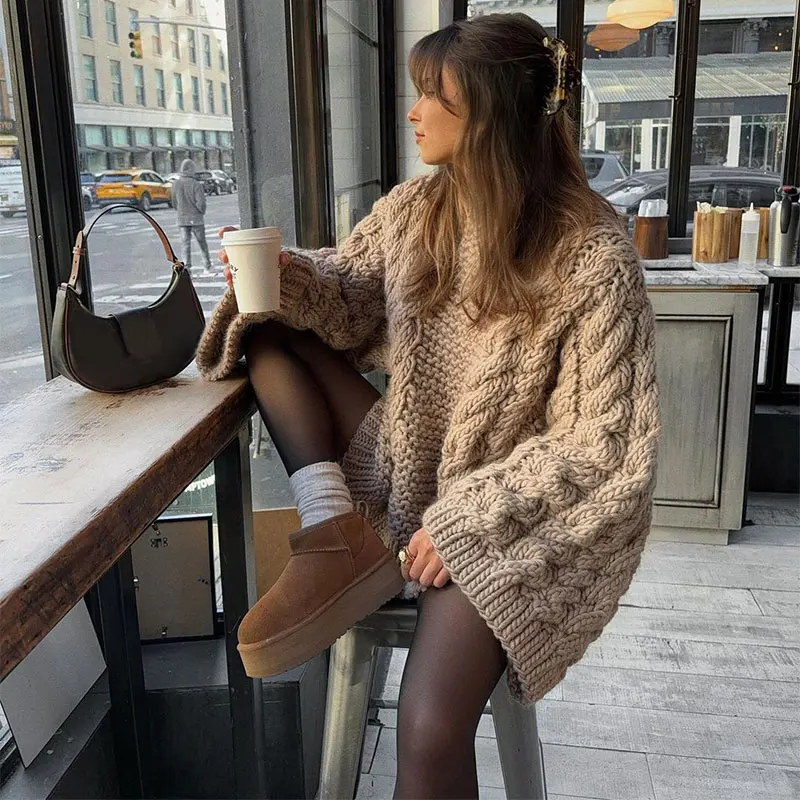 Dieser Oversize-Strickpullover ist nicht nur eine modische Wahl, sondern auch die ideale Lösung für kalte Herbst- und Wintertage. Das weiche Material schmiegt sich angenehm an deine Haut und sorgt für Wärme und Komfort, während der lockere Schnitt dafür sorgt, dass du dich frei und unbeschwert bewegen kannst. Kombiniere ihn mit deiner Lieblingsjeans oder trage ihn über einem Kleid für einen lässig-eleganten Look. Mit diesem Pullover bist du immer stilvoll und bequem unterwegs, egal ob beim Stadtbummel oder einem gemütlichen Tag zu Hause.