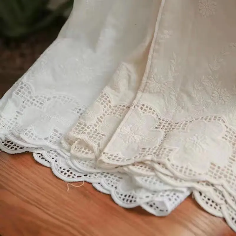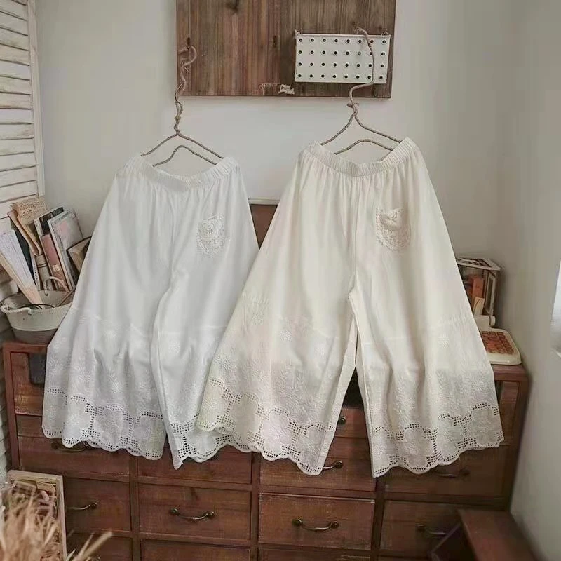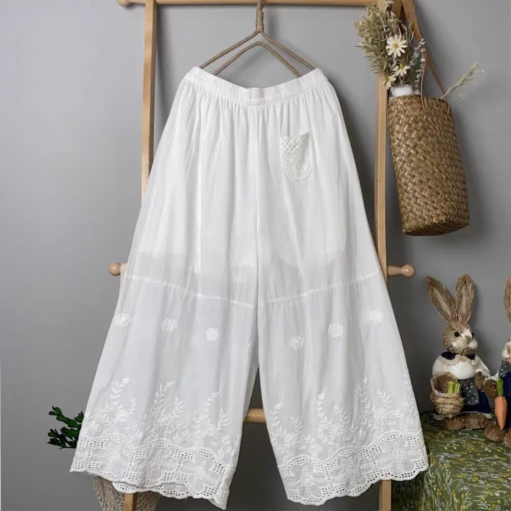 Refresh your collection with the Sweet Floral Embroidery Eyelet Lace Wide Leg Pants. Featuring delicate eyelet lace paired with detailed floral embroidery, these pants offer an elegant yet breathable design. The wide leg cut provides both comfort and freedom of movement, suitable for a variety of occasions from casual to formal. Designed for those who appreciate a stylish silhouette with airy fabric.